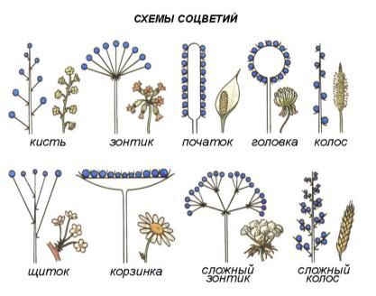 Сложные соцветия состоят из простых соцветий, расположенных на главной оси.