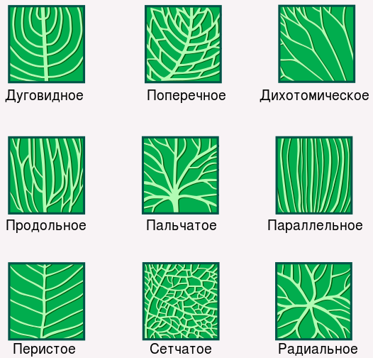 Лист: листовая пластинка, черешок, основание. У основания могут быть прилистники. Черешковые листья – с черешками (крапива, липа, клен). Сидячие – без черешка (злаки, одуванчик, лен). Жилкование листьев1. Параллельное. Жилки в листовой пластине располагаются параллельно друг другу и выглядят как прямые линии (злаки). 2. Дуговое. Расположение жилок похоже на параллельное, но чем дальше от центральной оси листовой пластинки, тем больше жилка имеет форму дуги, а не прямой (ландыш). 3. Сетчатое. Жилки в листе образуют ветвящуюся сеть. Такое жилкование характерно для многих двудольных растений. В зависимости от количества листовых пластин на одном черешке листья делят на простые и сложные. Простые листья: на одном черешке развивается только одна листовая пластина (береза, осина, дуб). Сложные листья: от одного общего черешка отрастают несколько или множество листовых пластин; при этом у каждого такого листочка есть свой маленький черешок, который его соединяет с общим черешком. (рябина, акация, земляника)